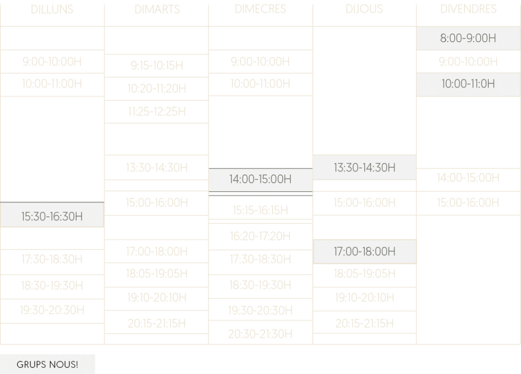 Els horaris poden canviar en funció de la demanda de places. Les classes duren una hora aprox.